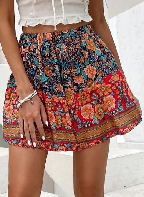 Gender:Women’s,Pants Type:Shorts,Swing,Style:Vacation,Occasion:Weekend,Holiday,Fabric:Polyester,Design:Print,Elasticity:Micro-elastic,Pattern:Floral,Function:Comfort,Fit Type:Loose Fit,Print Type:3D Print,Pants Length:Short,