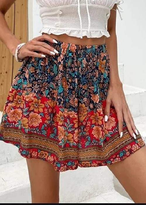 Women’s Shorts Swing Red Vacation Holiday Weekend Short Comfort Floral S M L XL 2XL
